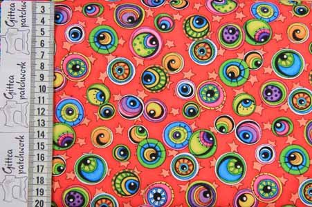 Rød baggrund med farvede kugler/øjne